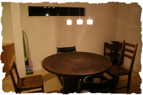 コチラ↑の照明もテーブルも以前の家からの持ち込みです。